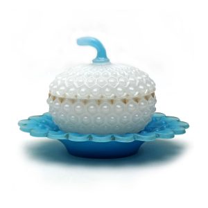 RARA COMPOTEIRA EM OPALINA BACCARAT – FRANÇA SEC XIX – NAS CORES AZUL E BRANCA