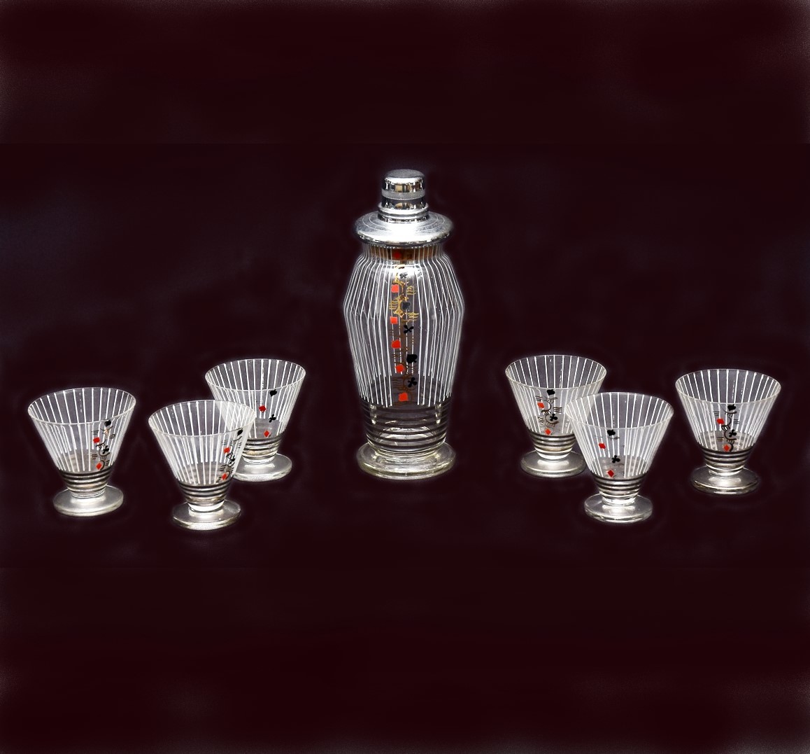 COQUETELEIRA COM 6 CÁLICES DÉCADA DE 50