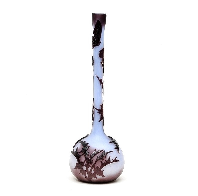 GALLÉ - VASO RUBI COM FLORES E FOLHAS