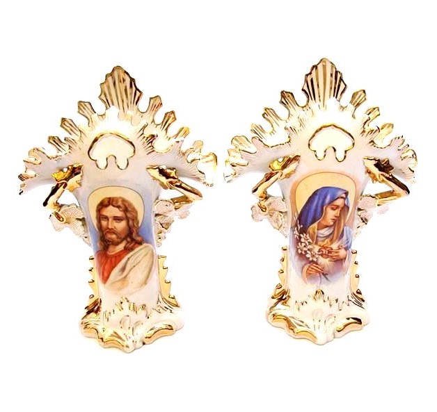 PAR DE ANFORAS COM FIGURAS RELIGIOSAS