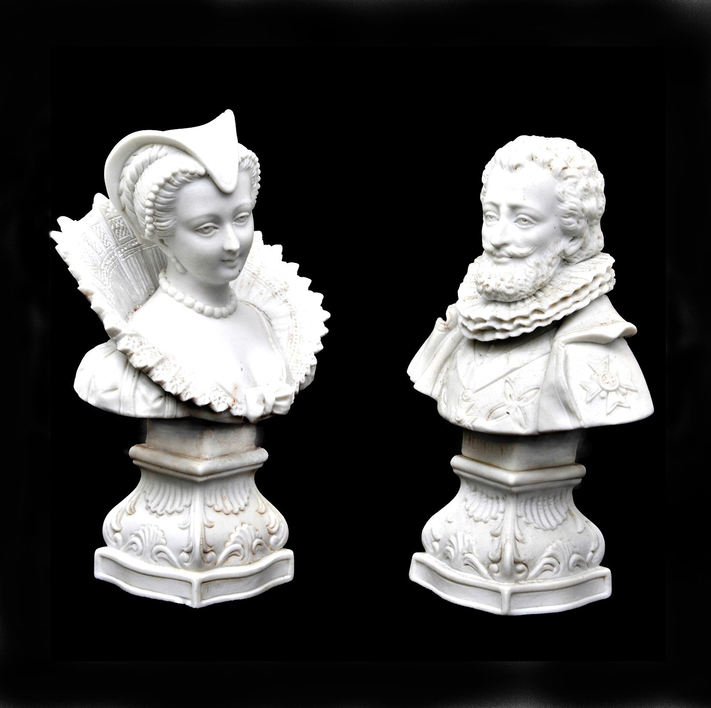 PAR DE BUSTOS EM BISCUIT FRANCÊS DE SEVRES DO SEC XIX