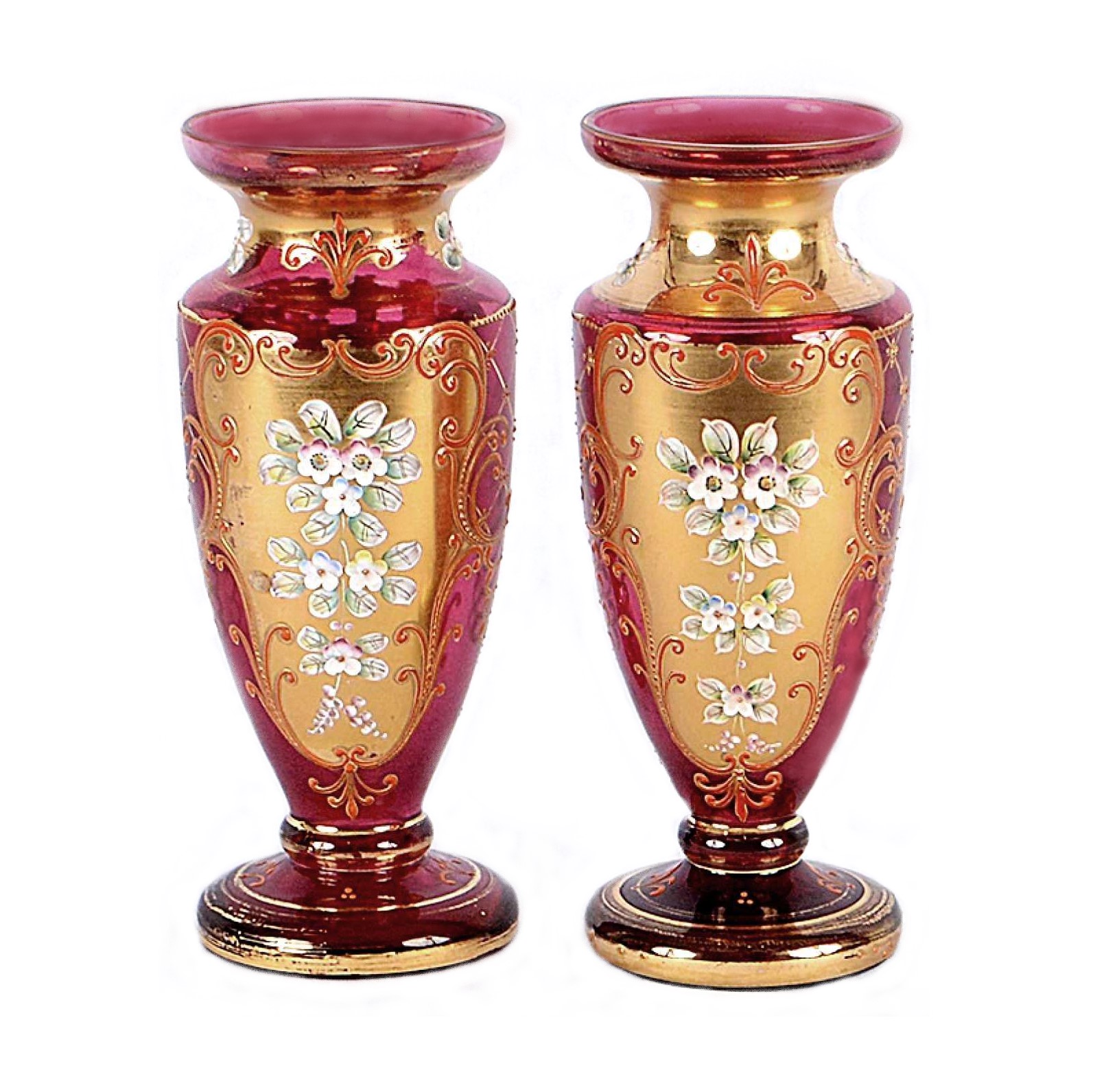 PAR DE VASO EM CRISTAL VENEZIANO NO TOM VERMELHO