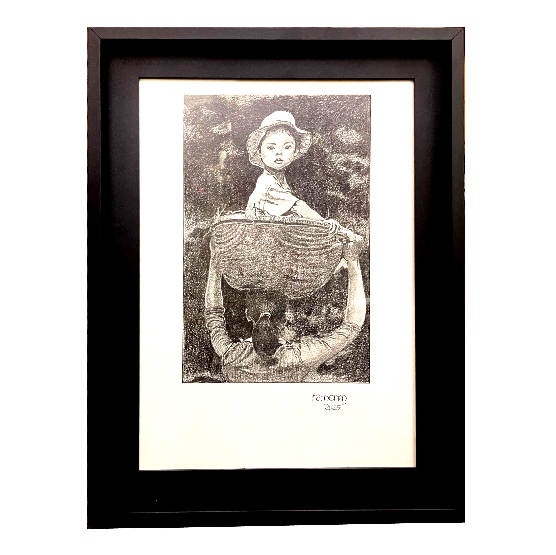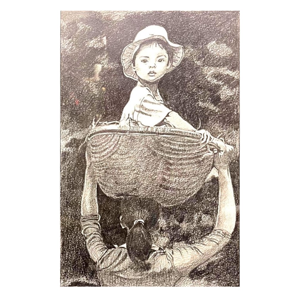 RAUL AMORIM “CRIANÇA NO CESTO” CRAYON SOBRE PAPEL CANSON